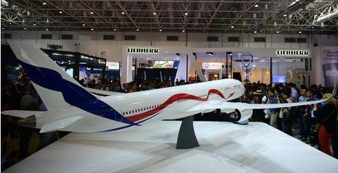第十一屆珠海國際航展上,中國商用飛機有限責任公司(下簡稱“中國商飛”)攜1:10比例的寬體客機模型亮相航展。這是這架寬體客機首次亮相,記者了解到,該機將由中俄兩國對等研制,目前尚未命名。該型客機與目前波音和空客公司最新型的寬體客機B787、A350大致相同,但預計運營成本將再低10%。 6月簽署合同總裝線位于上海 今年6月25日,在習近平主席與普京總統見證下,中國商飛公司與俄羅斯聯合航空制造集團(以下簡稱UAC)簽署了項目合資合同,中俄兩國企業就研制寬體客機正式確立合作關系。雙方企業將按照對等原則開展研制工作,各投資50%,在上海組建合資公司作為項目實施主體。目前,該飛機的總裝線設于上海,并向全世界提供這款飛機。“根據以后市場的調整,也會存在其他可能性。” “今天在這里向大家展示這個寬體機模型,就意味著寬體機項目已經開始了。”中俄遠程寬體客機項目總經理郭博智表示。他還稱,討論如何選擇飛機的供應商是很長的一個過程。“供應商要和我們一起,按照飛機系統的定義做出方案,再與飛機進行優化設計。 記者在現場看到,該款寬體客機模型機身凃繪了象征中、俄雙方的紅藍色彩帶,并印有“中國商飛”和“UAC”的標志。不過,記者了解到,目前該款飛機尚未命名。